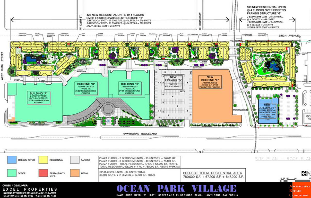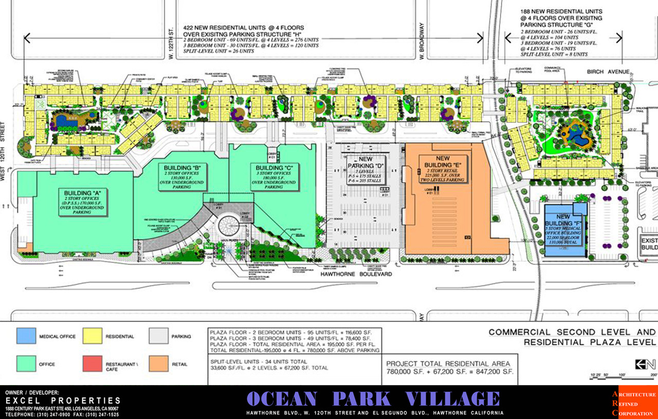 This is a major urban master plan project adjacent to LAX international airport. The project includes 590,000 S.F. of office spaces, 250,000 S.F. of retail and restaurant spaces and 645 units of residential apartments. The total building area is 1.6 million SF. The project embraces four standard city blocks...